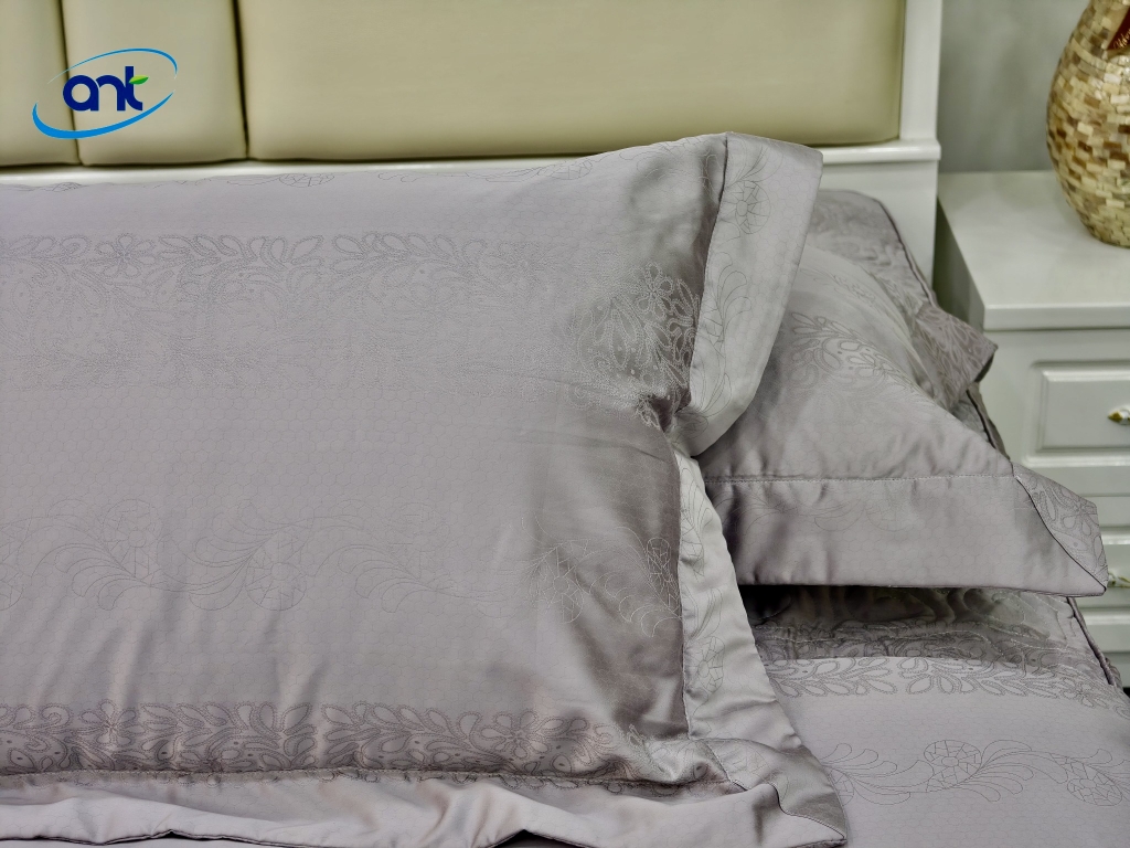 Tencel tơ lụa dệt Jacquard là chất liệu cao cấp kết hợp giữa sự mềm mịn của tơ lụa, độ thoáng mát của sợi Tencel và vẻ sang trọng của công nghệ dệt Jacquard hiện đại. Đây là loại vải được ưa chuộng trong các dòng chăn ga gối cao cấp nhờ cảm giác chạm mượt mà, độ bền vượt trội và họa tiết tinh xảo.
