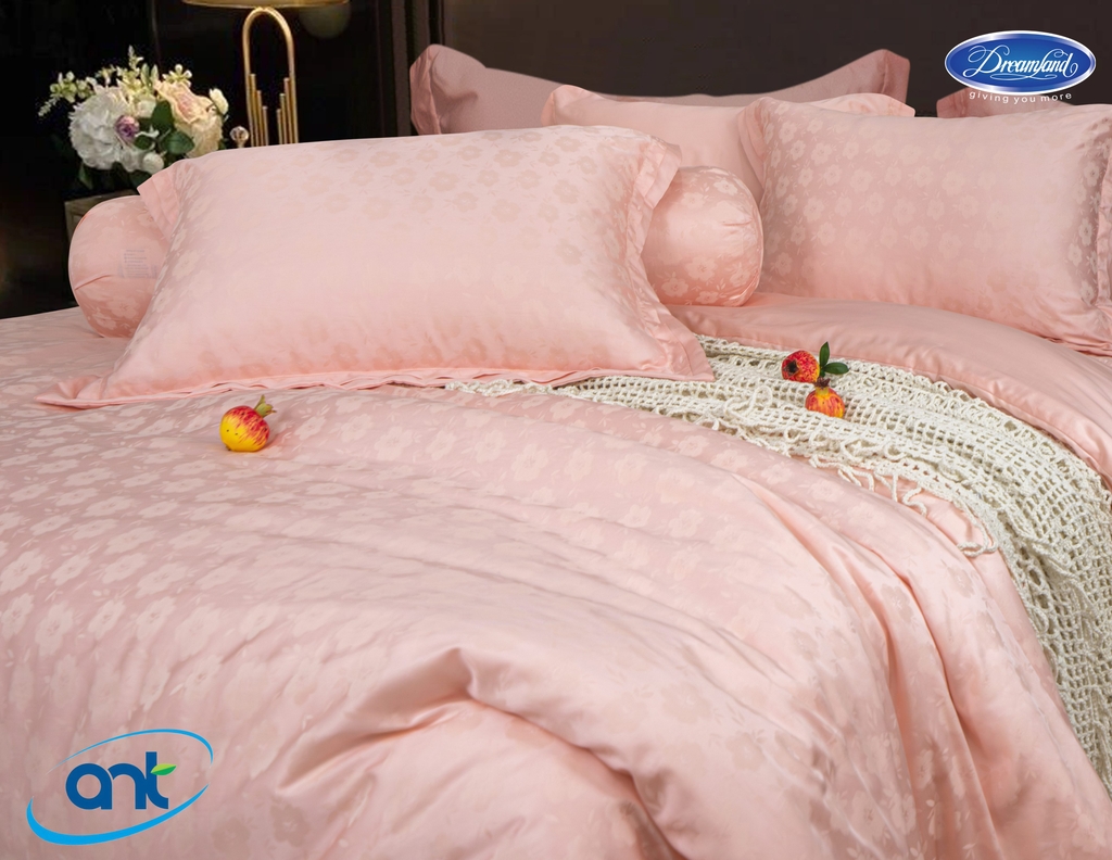 Tencel tơ lụa dệt Jacquard là chất liệu cao cấp kết hợp giữa sự mềm mịn của tơ lụa, độ thoáng mát của sợi Tencel và vẻ sang trọng của công nghệ dệt Jacquard hiện đại. Đây là loại vải được ưa chuộng trong các dòng chăn ga gối cao cấp nhờ cảm giác chạm mượt mà, độ bền vượt trội và họa tiết tinh xảo.